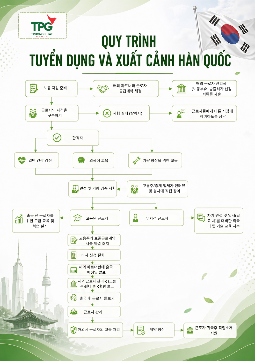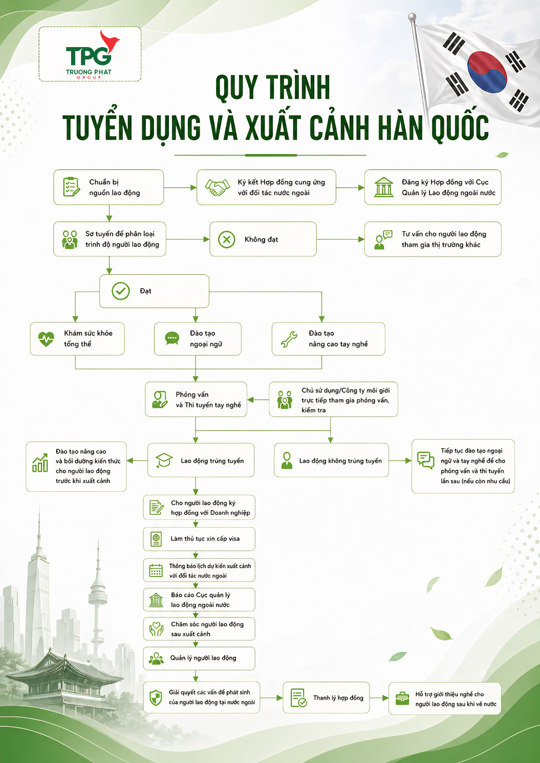QUY TRÌNH TUYỂN DỤNG VÀ XUẤT CẢNH DÀNH CHO NGƯỜI LAO ĐỘNG SANG LÀM VIỆC TẠI HÀN QUỐC